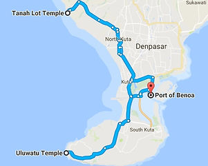 Shore Excursions - dependant on last tender or all aboard time.If your shore time is less than 7.5 hours then you should choose either Uluwatu or Tanah Lot as we always have a 60 minute buffer and there is not enough time to do both Temples.